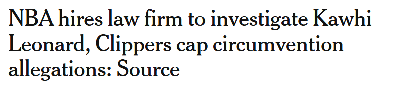 此次调查并非莱昂纳德与快船队首次卷入“工资帽相关争议”:2019年夏天莱昂纳德成为自由球员时,其舅舅兼经纪人丹尼斯-罗伯逊曾向多支有意签约的球队索要一系列超出联盟规则的场外福利,最终莱昂纳德加盟快船。当时NBA也曾展开调查,但未发现球队存在违规行为。